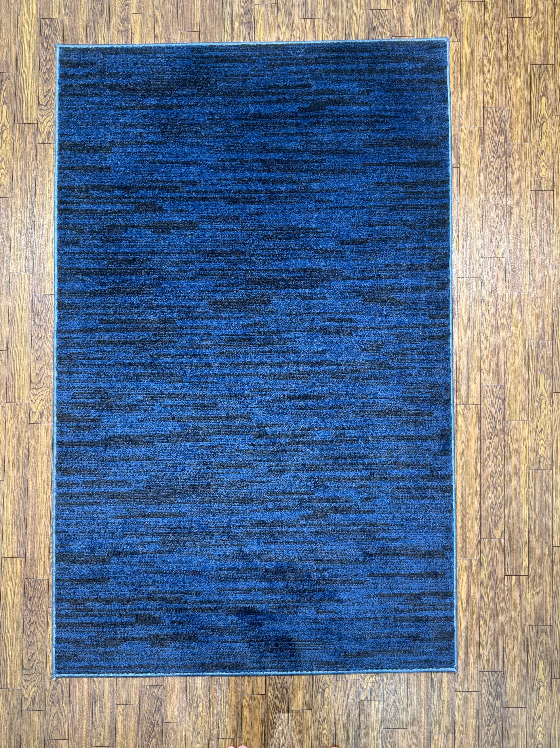 This rug offers a sophisticated take on a solid color. A subtle, horizontal distressed texture creates a dynamic ombre effect, seamlessly transitioning from a vibrant cobalt blue to a deep, solid black. This creates a piece with visual depth and modern edge, perfect for contemporary, industrial, or eclectic spaces. The 3x5 ft size works perfectly as a bold runner in a hallway or as a statement piece in a modern living area.